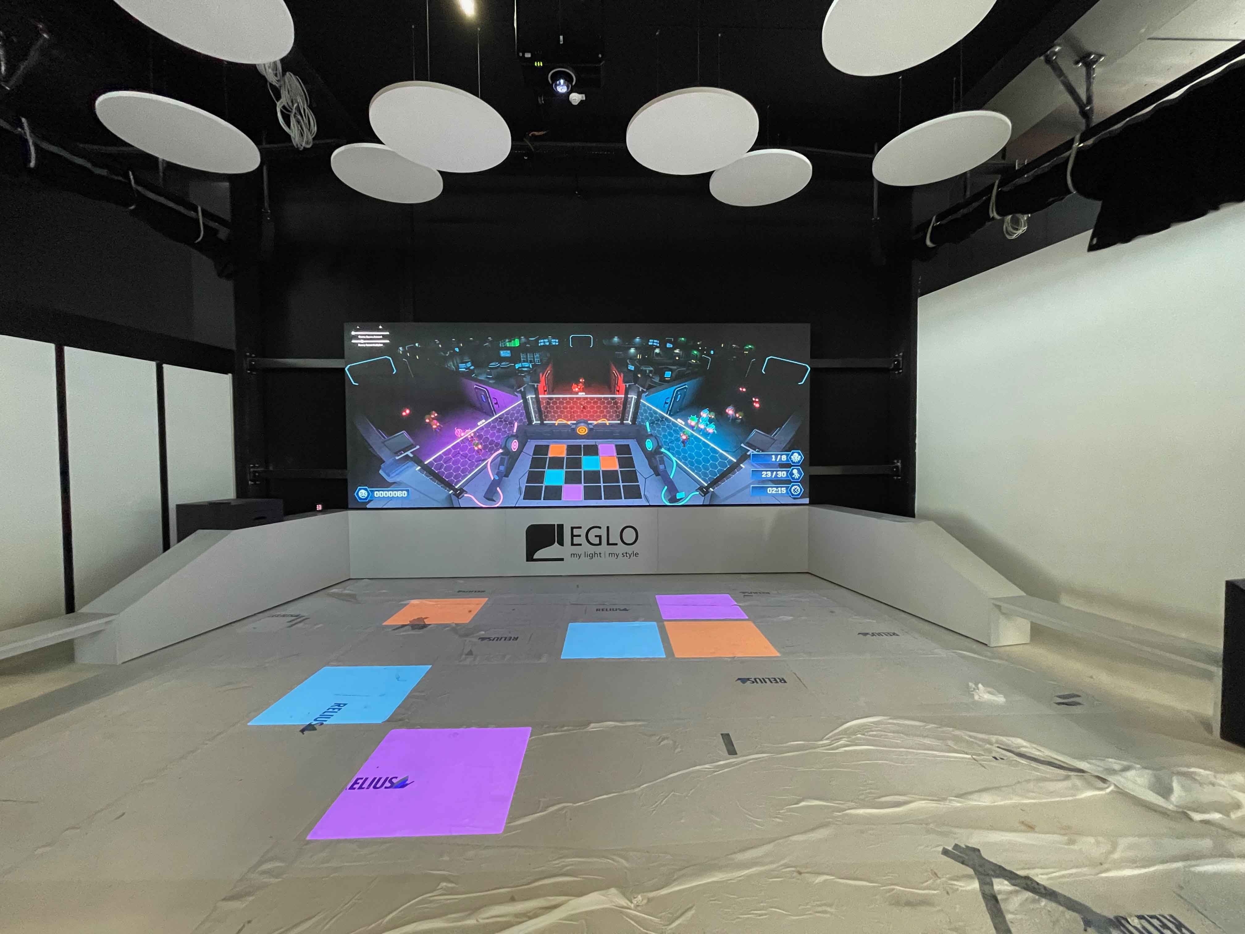 Die Herausforderung bestand darin, ein interaktives Spiel zu entwickeln, das Kinder unterhält, während ihre Eltern einkaufen, und das es den Kindern ermöglicht, auf spielerische Weise mit EGLO-Produkten zu interagieren. Darüber hinaus sollte der Installationsraum multifunktional für verschiedene Zwecke genutzt werden können, z. B. für Präsentationen und Firmenveranstaltungen.